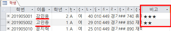 성취도 2, 이름 고민종 으로 각각 실행했는데 아래 그림처럼 정상적으로 실행이 됩니다.