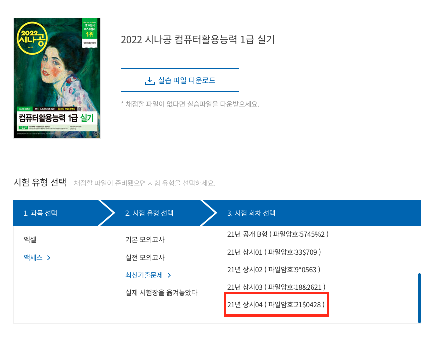저번에도 2021년 상시 03 엑세스 책과 채점프로그램 비번 달라서 문의드렸었습니다