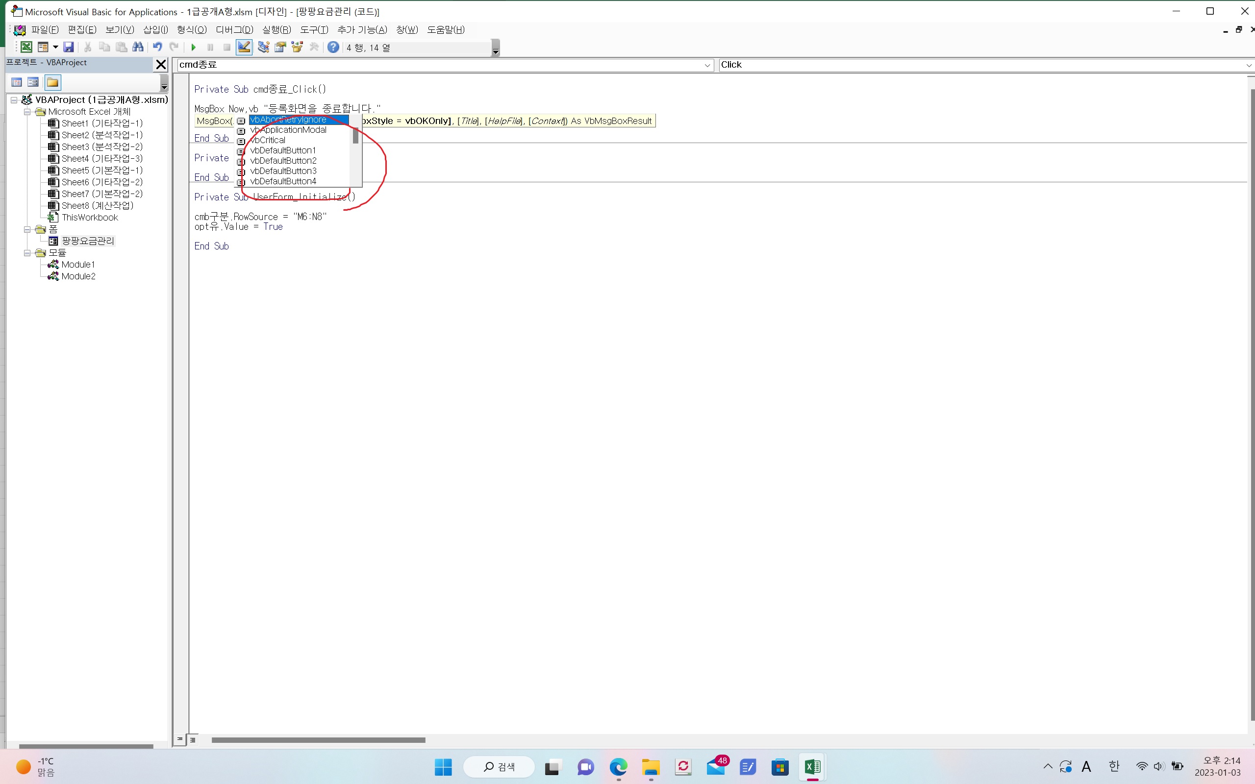 p.138 매크로 작성 시 항상 틀렸다고 나옵니다. / 프로시저 작성시 목록 뜨게 하는 법