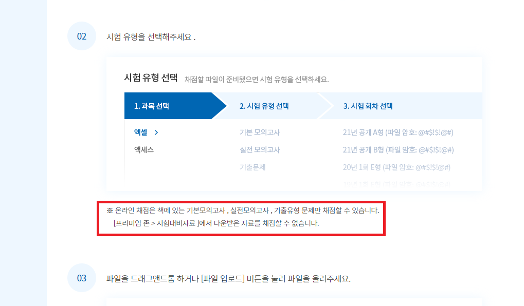 <채점 서비스 지원 범위> 안내드립니다.* 채점 서비스 지원 파일: 교재에 수록된 실제 시험장, 모의고사, 기출문제
