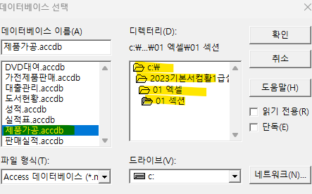 대부분 불러올 파일의 경로를 수정하면 됐는데 왜 안되는지 모르겠네요. 혹시 모르니 불러올 제품가공.accdb 파일을 c 드라이브 바탕으로 이동한 후 해보시기 바랍니다. 명쾌한 도움을 못드려 죄송합니다.