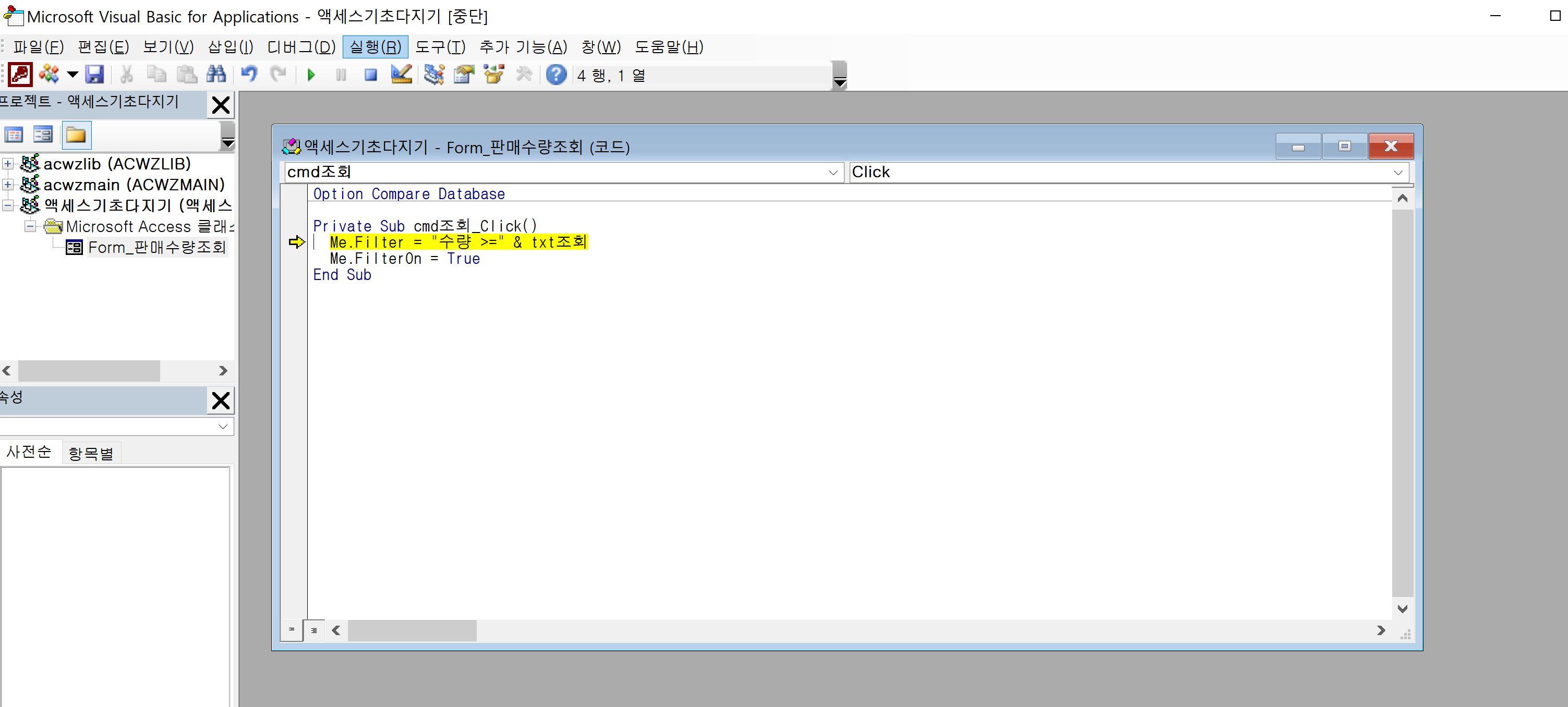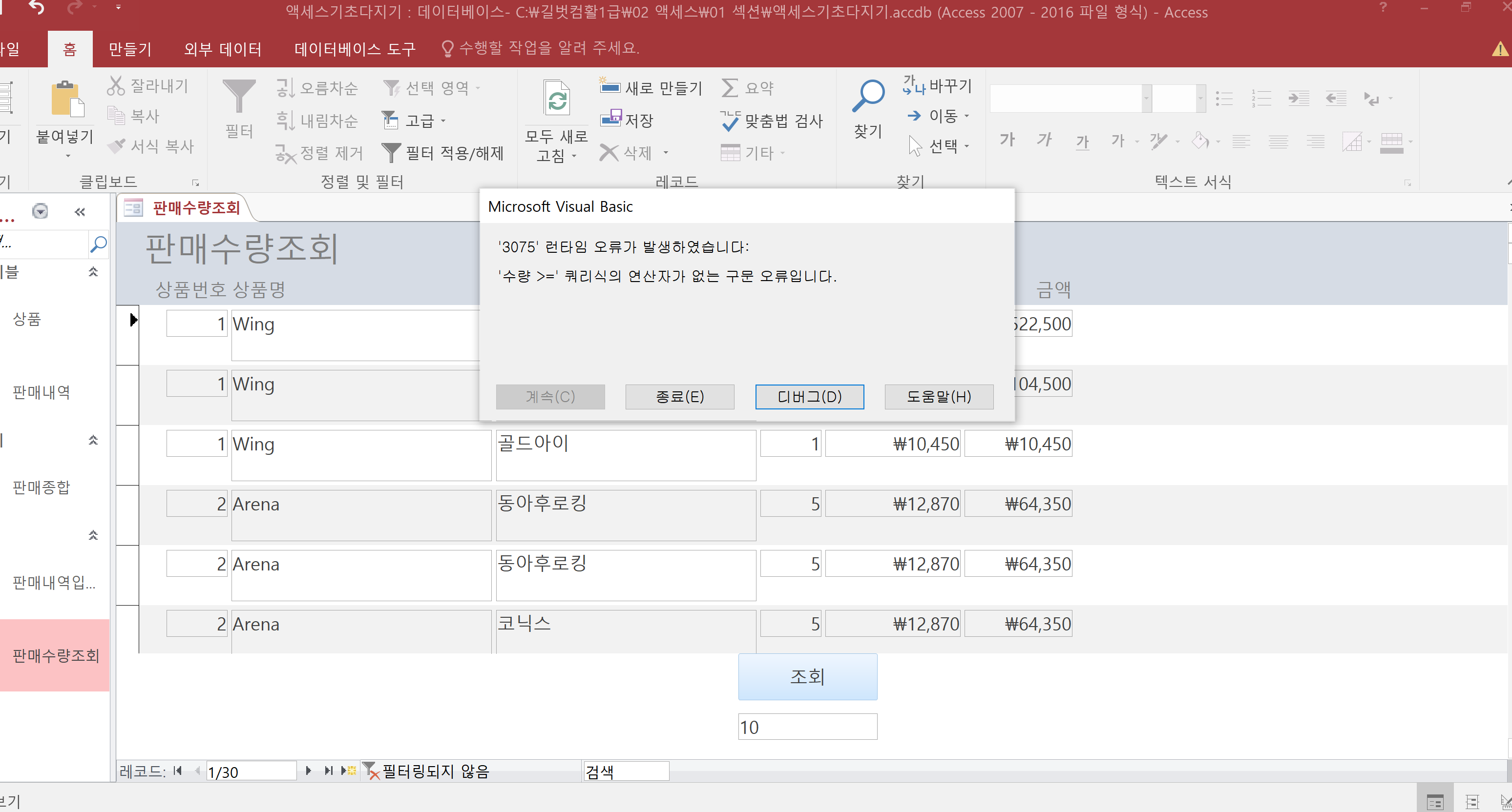 2권 37페이지 프로시저 코드 작성시 캡처와 같은 오류가 발생합니다