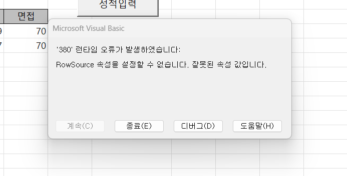기출 02번 기타작업 -3 시트 문제 풀이 중 런타임 380 오류 해결법이 궁금합니다.