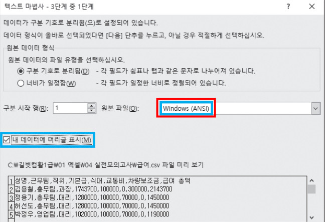 파일에는 이상이 없습니다. 피벗 테이블을 작성시 아래 그림과 같은 텍스트 마법사에서 원본 파일이 'windows (ansi)'로 지정된 상태에서 불러왔는지 확인해 보시기 바랍니다.