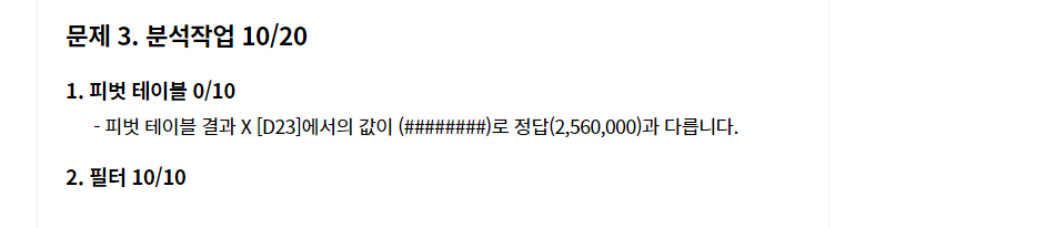 시나공 채점 프로그램에서 오류로 처리 한 부분이므로 실제 시험에서는 피벗테이블에서 값이 표시될 때 ### 으로 표시되는지 확인 후 셀 너비를 늘려 작성해 주세요.