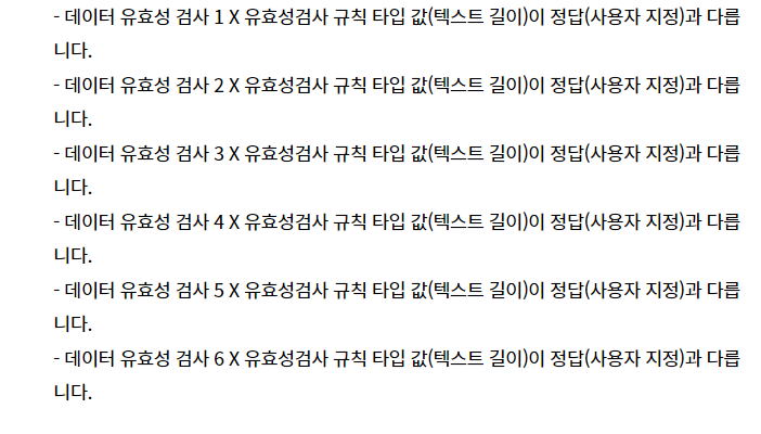 2. 유효성 검사규칙에서 저는 어떤 함수를 사용하라고 나와있질 않아서 제한대상을 텍스트 길이로 하고 밑에 길이를 4로 설정 후 채점을 돌렸는데 틀렸더군요..