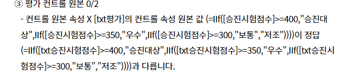 1. 폼 작업 2-1-3번 문제에서 저는 사진과 같이 txt승진시험점수 대신에 그냥 승진시험점수로 했는데 꼭 txt승진시험점수로 해야되나요?