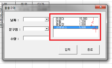 lst품목에서 선택한 값에 대한 위치를 지정하고 그 값을 이용하기 위한 부분입니다.