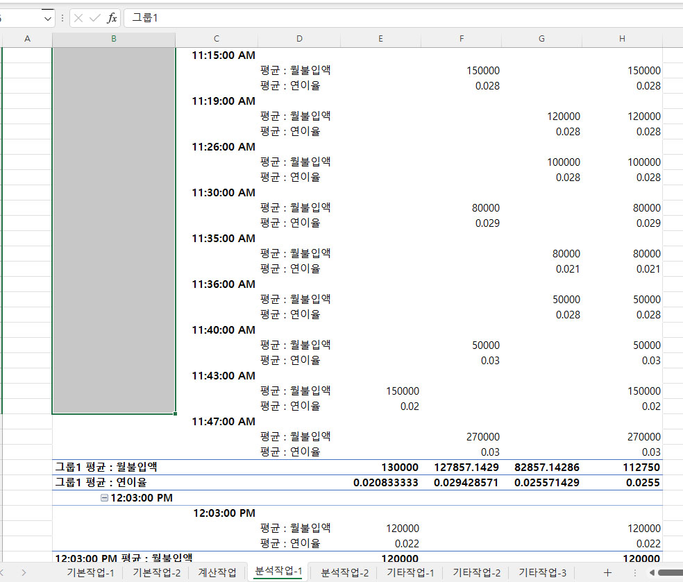 이전에 그룹한 부분을 제외한 부분을 범위로 지정하여 그룹을 지정하시면 됩니다.