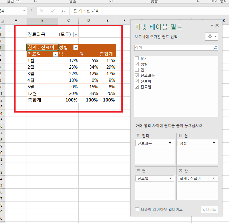 월(진료일)을 '진료일'로 필드명을 바꾸려고 해도 원래 있는 필드라서 안된다고 뜹니다.