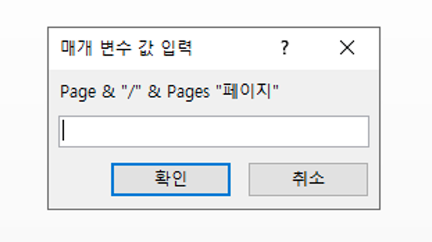 - 정답: =[Page] & "/" & [Pages] & "페이지"