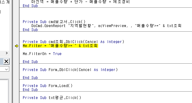 "매출수량>= " 쿼리식의 연산자가 없는 구문 오류입니다