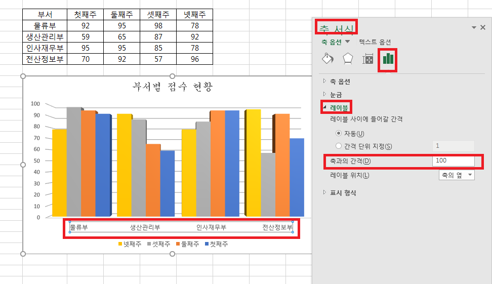 이런경우에는 레이블과 축과의 간격을 어떻게 설정하나요?