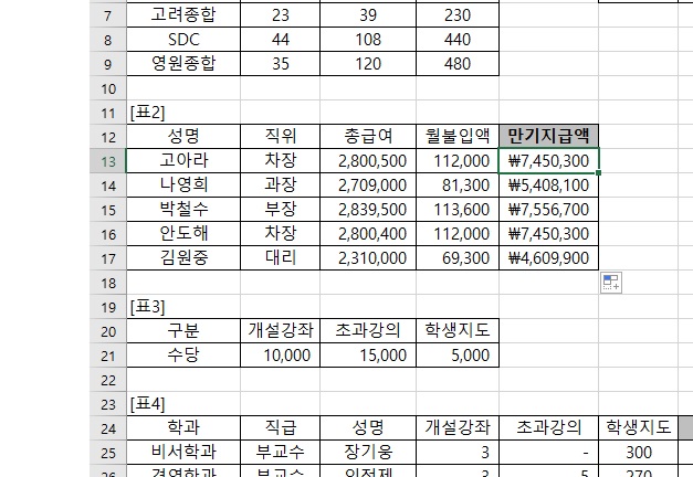 1권 스프레드시트 106 쪽 답안에는 ₩표시가 없는데 제가 풀면 ₩표시가 나와요