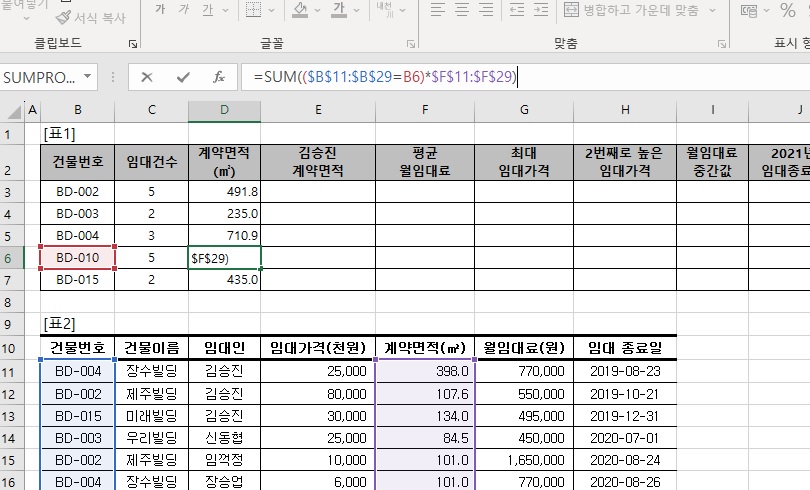 배열수식문제 풀고 컨트롤 + 시프트 + 엔터 하면