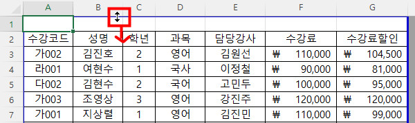 [보기]-[통합 문서 보기]-[페이지 나누기 미리 보기]를 선택한 다음 마우스 포인터를 파란색으로 표시된 부분으로 이동한 후 마우스 포인터 모양이 ↔, ↕ 등으로 변경되면 드래그하여 범위를 수정하면 됩니다.