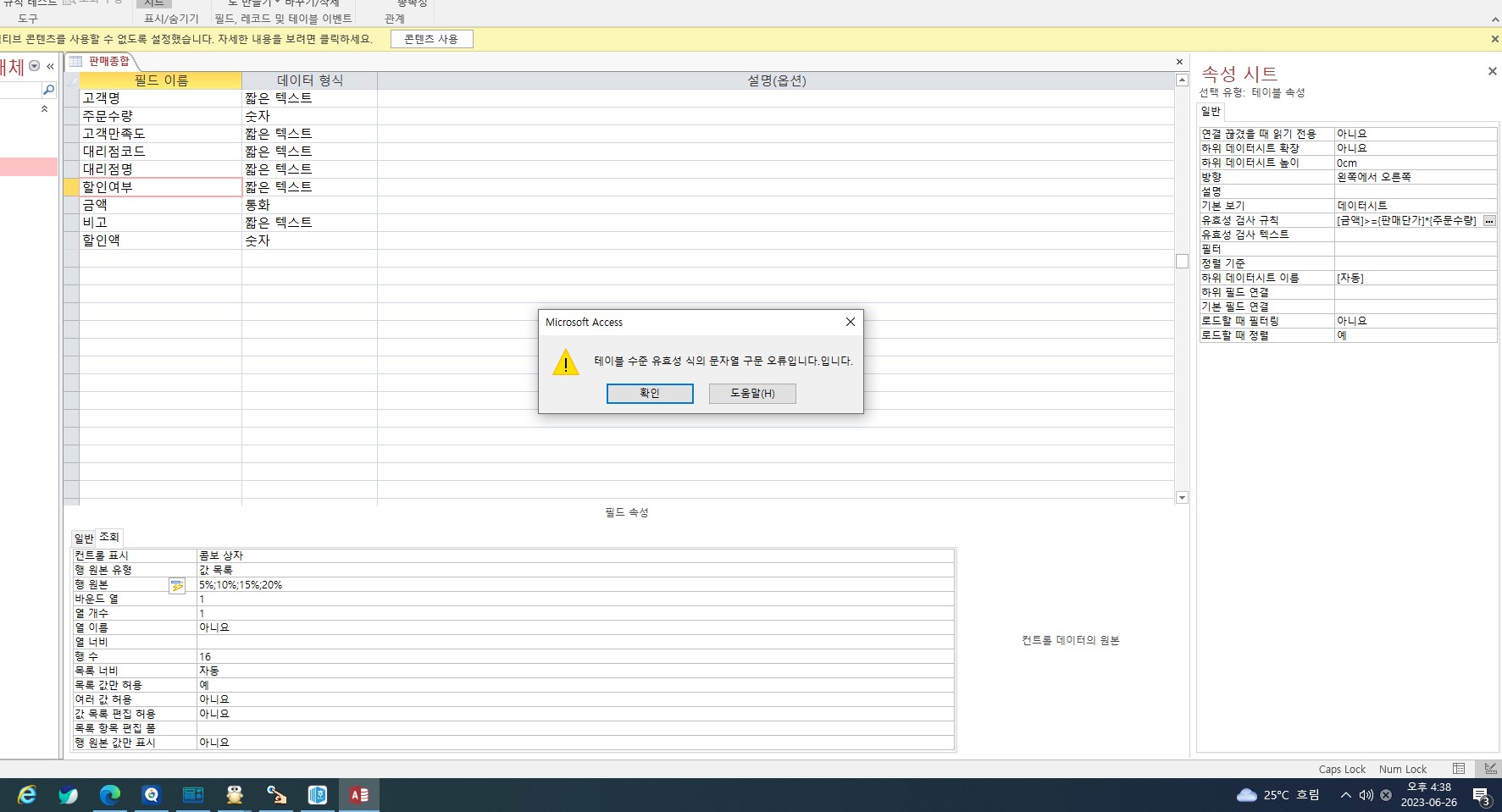 데이터베이스 실무 64쪽 2번문제 <판매종합> 테이블