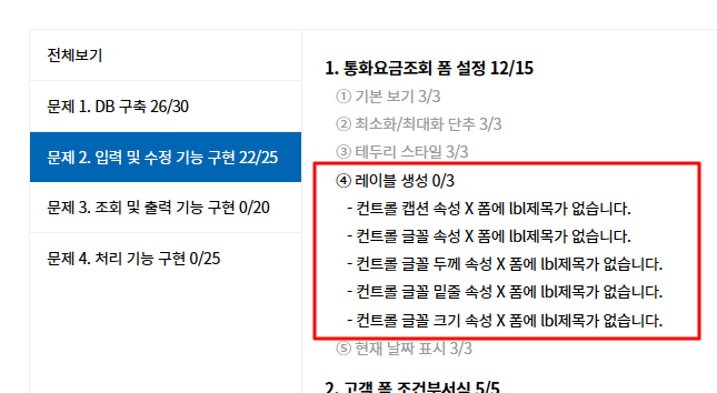 2권 데이터베이스실무 실전모의고사 D형 문제 2-1(④) 채점시 오류