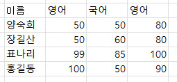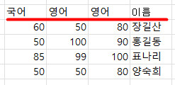 - 왼쪽에서 오른쪽 : 특정 행을 기준으로 열의 위치를 변경하여 정렬합니다.