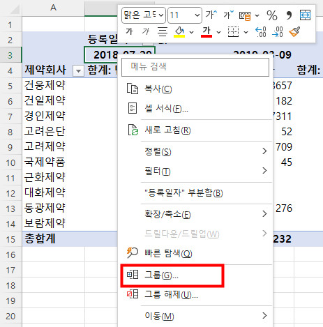 시나공 실기 엑셀6회 분석작업 피벗테이블 그룹화 안됨