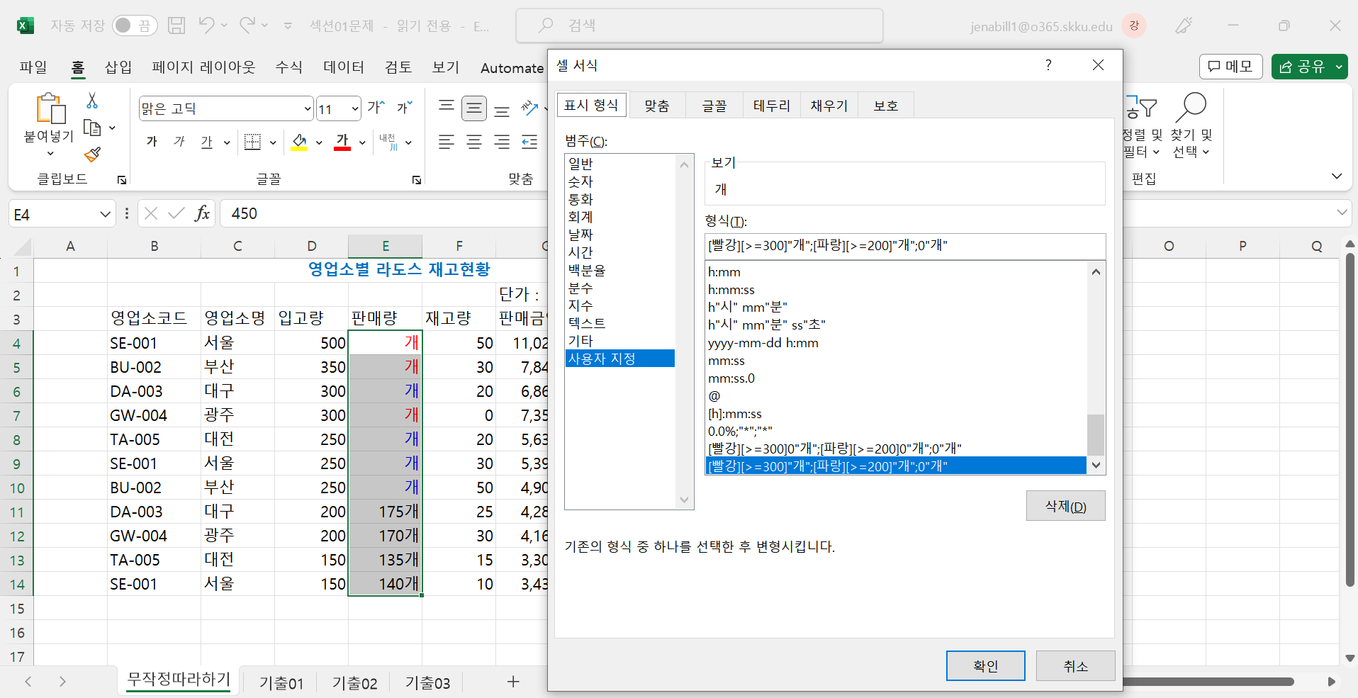 조건 있는 사용자 지정 표시 형식 지정