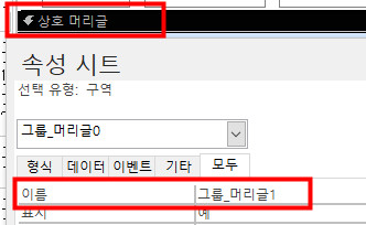 3. 그룹 머리글 또는 그룹 바닥글을 지정하면 해당 머리글이나 바닥글에도 이름이 지정됩니다. 이 이름이 달라 저희 채점 프로그램이 해당 항목을 찾지 못해 감점된 것입니다.