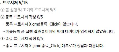 맞게 작성하셨습니다. 저희 채점 프로그램은 정답과 비교하여 다른 부분을 틀린 것으로 채점하는데, 정답 파일과 vbOKOnly 부분이 달라 감점된 것입니다. vbOKOnly는 생략이 가능하므로 실제 시험에서는 이런 경우 맞는 것으로 채점됩니다.