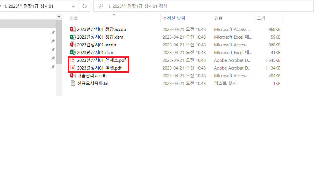 시험 대비 자료를 받으신 후 압축을 푸시고, 각 회차 폴더에 들어가시면 PDF로 된 파일이 있습니다.