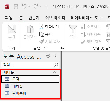 엑세스를 처음 다뤄보는데 1장 문제를 풀어보려고 섹션1문제를 불러 왔는데 테이블에 아무것도 없고 불러오기가 안돼서 아무것도 나타나는게 없어 문제를 풀 수가 없네요