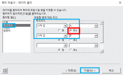 불러올 항목이 없다는 것으로 봐서는 불러올 때 지정한 조건을 잘못 지정한 듯 합니다. 아래 그림에서 [또는]를 정확히 선택하여 다시 한번 피벗 테이블을 작성해 보시기 바랍니다. 그런데도 동일한 대화상자가 표시된다면 그림이 아닌 엑셀 파일을 올려주세요. 파일을 직접 봐야 원인을 알 수 있습니다.