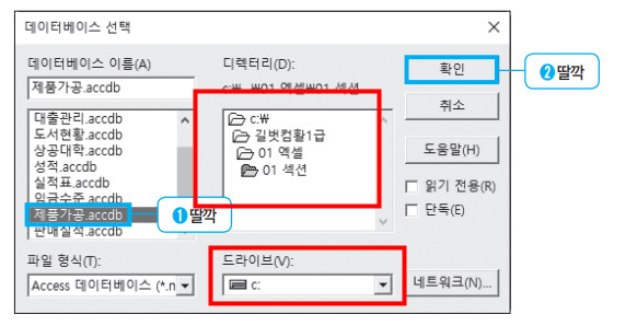 제가 컴활 1급 실기 준비중인데 엑세스, 스프레드시트 모두 외부 데이터 가져오기가 되지 않습니다