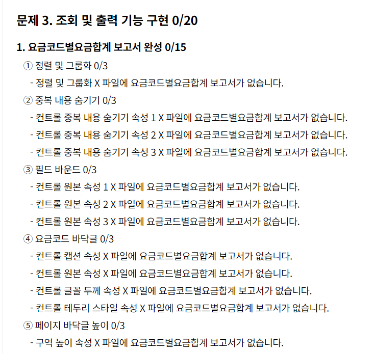 문제없이 보고서를 완성한 것 같은데 채점 프로그램에는 이렇게 나옵니다. 푼 문제를 함께 올렸는데 뭐가 문제인지 알 수 있을까용?
