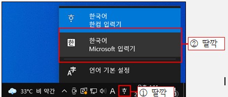 입력기가 ‘한컴 입력기’로 설정되었기 때문입니다. 다음과 같이 Windows 작업 표시줄 알림 영역의 ‘입력기’ 아이콘을 클릭하고 [한국어 Microsoft 입력기]를 선택한 후 [Ctrl]+[Shift]+[Enter]를 누르면 수식에 중괄호({ })가 입력됩니다.