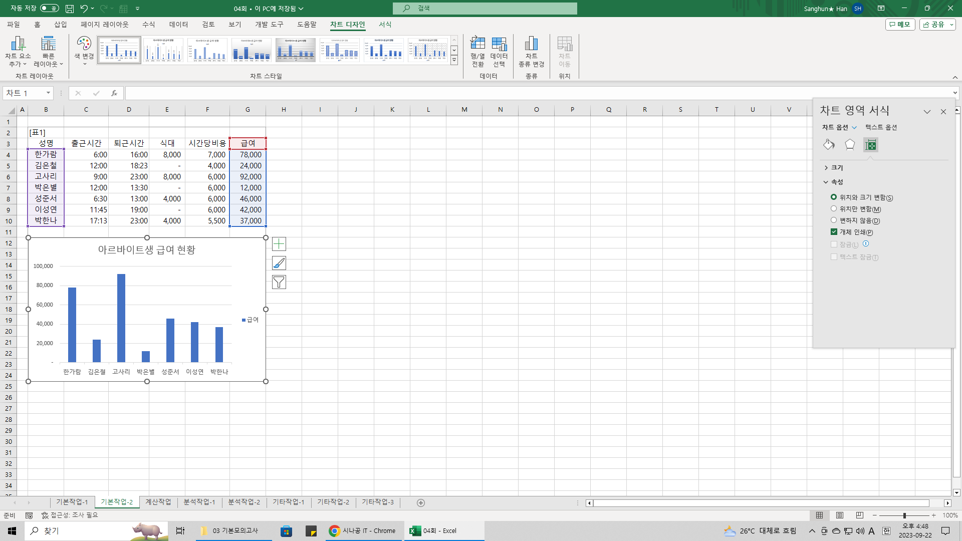 시트 보호를 실행한 상태에서는 차트의 편집 잠금을 지정할 수 없습니다. 차트의 편집 감금을 지정한 후 시트 보호를 하셔야 합니다.