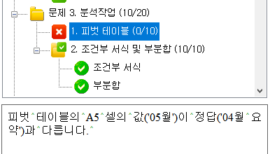 유튜브 강의 "[시나공 컴활1급] 3132033 기본모의03 3분석작업"를 보고 3번 문제를 그대로 따라 해봤는데요 몇 번을 해봐도 답안과 결과가 다르게 나와서 문의드립니다..ㅠㅠ