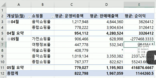 강의에 따르면 답지 360p 14번-15번 과정에서 그룹화를 진행하면 그룹화 되면서 4월요약과 5월요약이 같이 생성되던데 저는 요약이 안생겨요..ㅠㅠ 왜그럴까요...