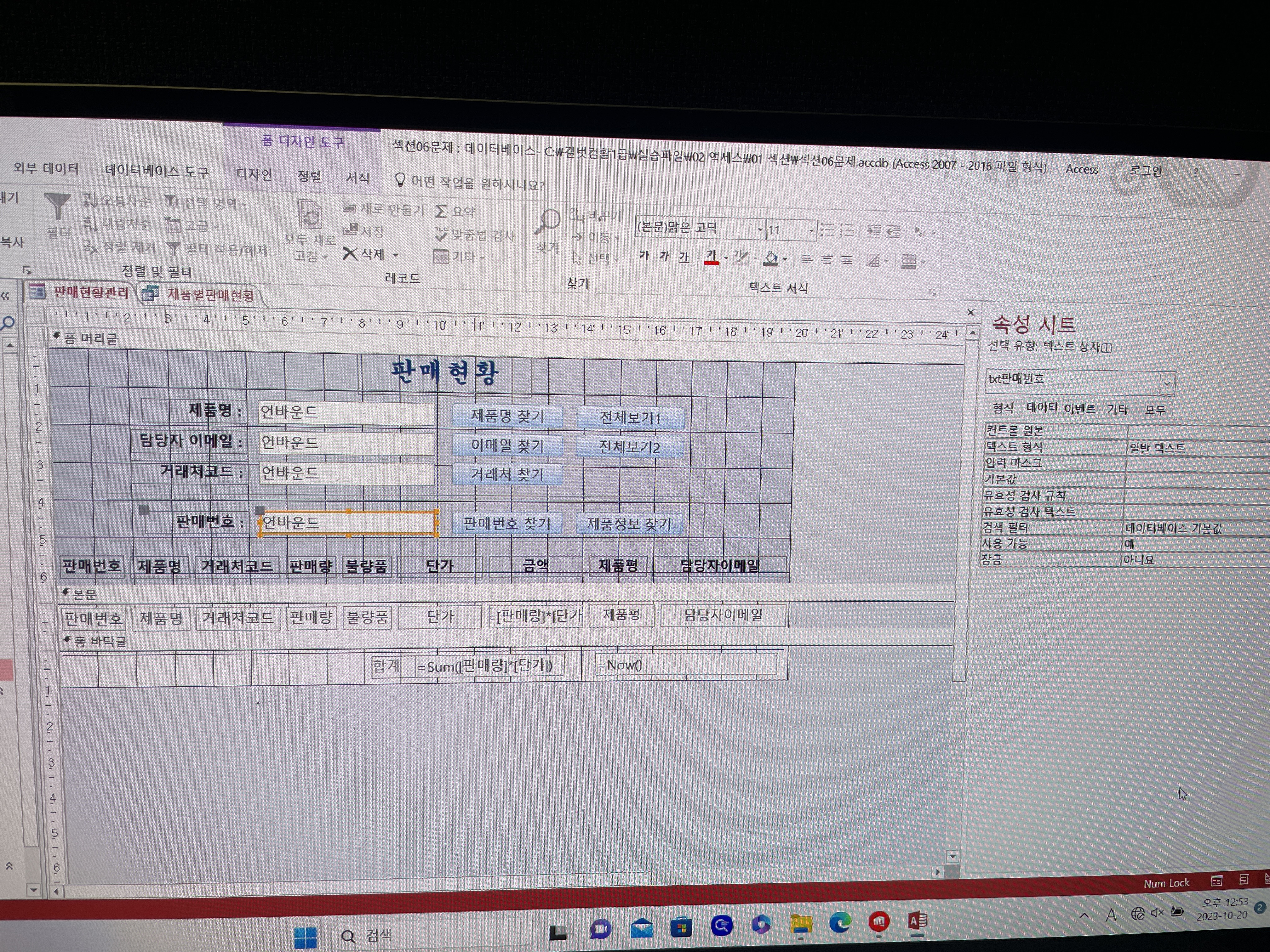 txt판매번호 속성 텍스트형식이 일반텍스트인데