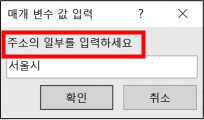 [주소의 일부를 입력하세요], [조회할 직급의 첫 글자를 입력하세요]과 같이 [ ] 안에 입력되는 내용을 말씀하시는 건가요? 그렇다면 문제에 제시된 '매개 벼수 값 입력' 대화상자 그림을 보고 입력하시면 됩니다.