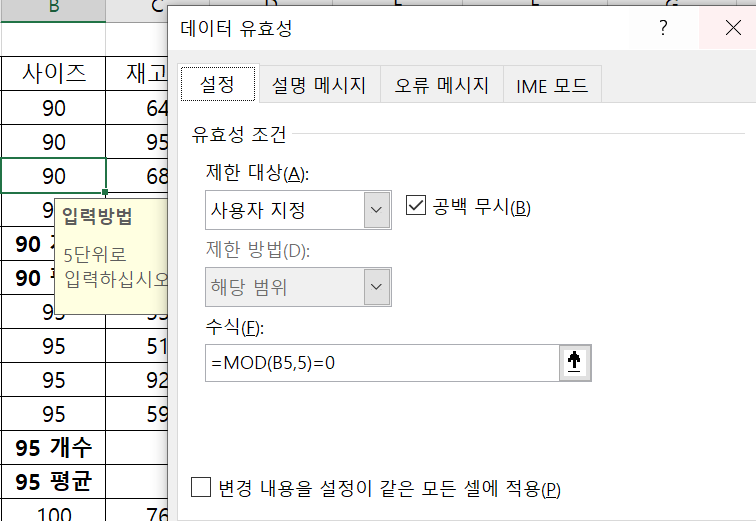 유효성 검사 규칙 설정했는데 몇 회째 규칙작성이 안되었다고 떠요