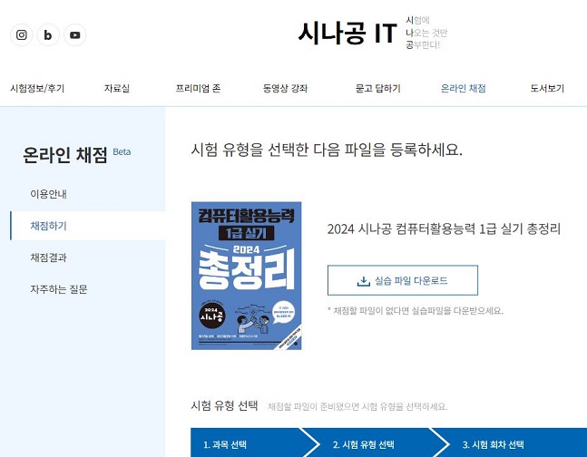 온라인 채점서비스는 도서에 안내된 대로 아래 경로에서 이용하시면 됩니다.