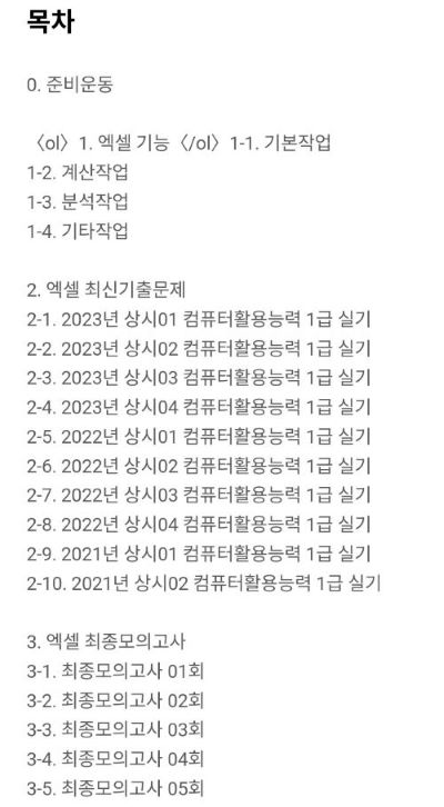 ↳ (2024 시나공 컴퓨터활용능력 1급 실기 총정리 엑셀부분 목차)총정리의 목차에 "계산작업" 부분이 있어 이 부분에 대해 문의를 남겼었습니다.