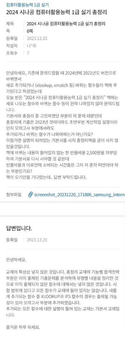 어찌보면 그냥 남기신 답글을 보고 그것만을 믿고 총정리 책을 산 제가 잘못된 것인가요?