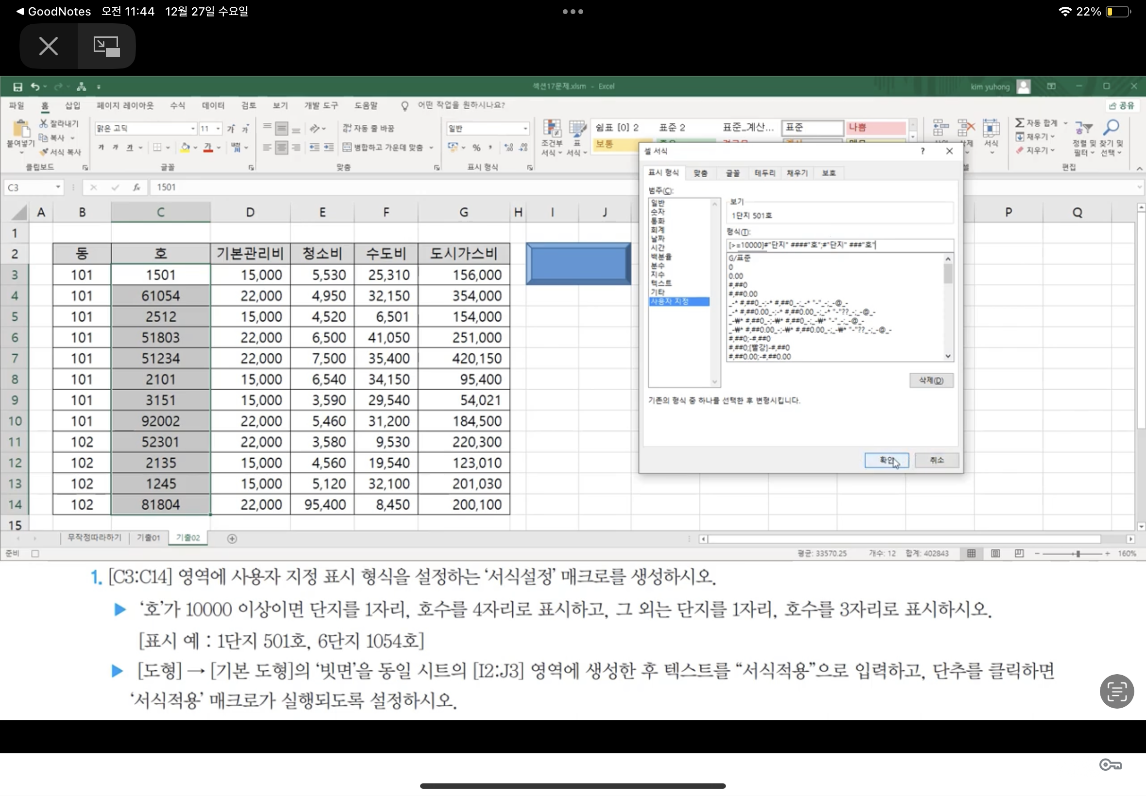 0은 셀에 입력된 값이 0일때 0개, 0명 등과 0이 표시되도록 지정하라는 지시사항이 있는 경우 표시 형식을 반드시 0개, 0명으로 설정해야 합니다. #개, #명으로 지정하면 셀에 입력된 값이 0일 경우 개, 명 등으로만 표시됩니다.