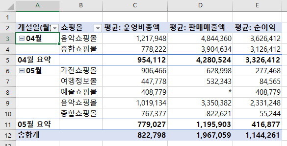 동영상에서는 개설일을 행에 두면 자동으로 개설일(월)이 따로 생기던데,