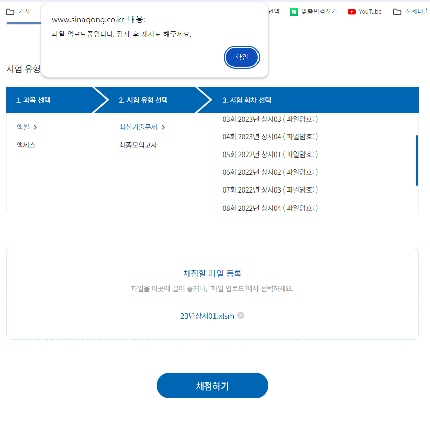온라인 채점 파일 업로드 시 에러 발생하여 채점 기능을 사용할 수 없습니다.