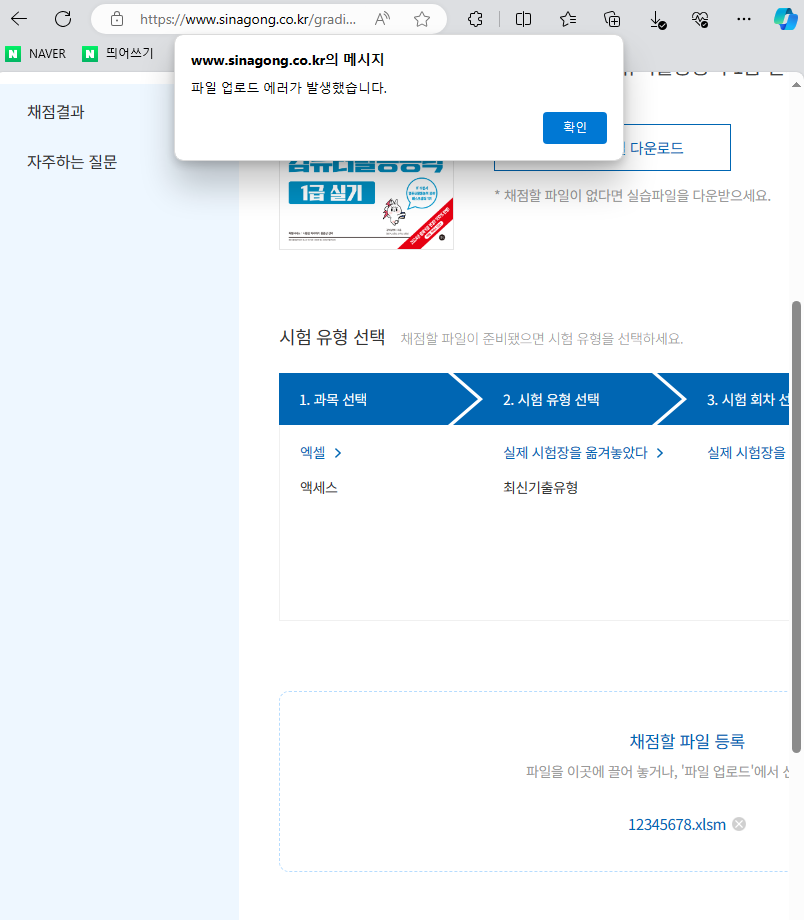 엑셀 작업을 완료하고 채점하는 곳에 파일을 첨부하니 "파일 업로드 에러가 발생했습니다" 라고 뜨네요 ㅠ