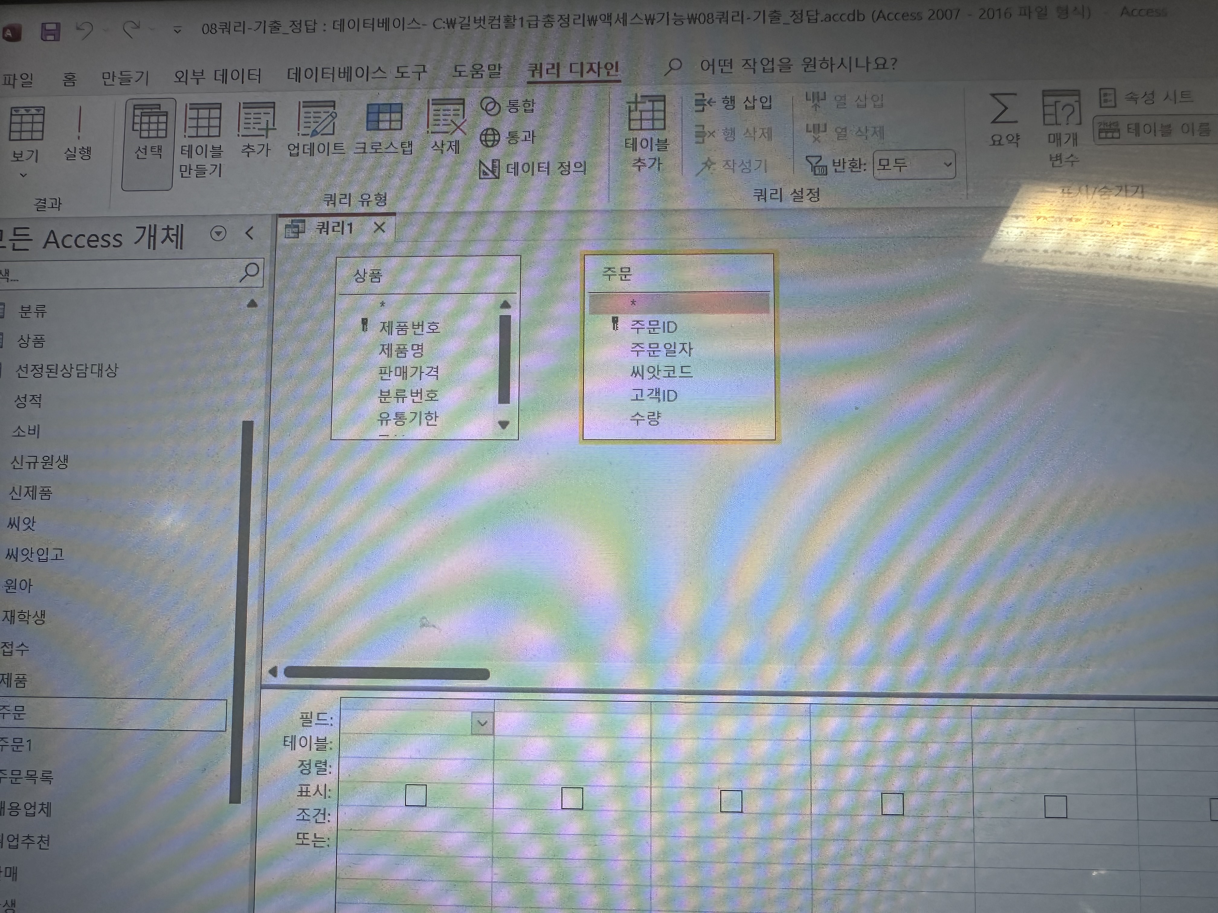 08쿼리-기출.accdb 파일입니다. 이 파일은