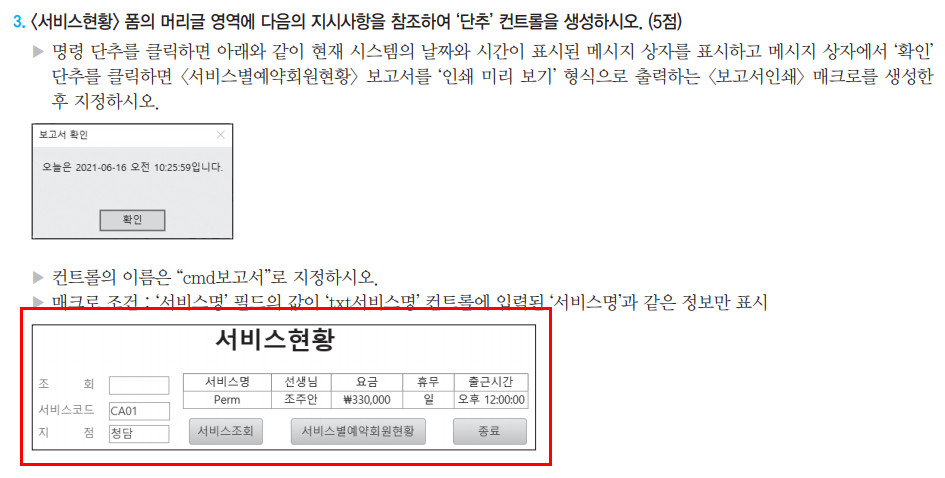 2-3 문제에서 cmd보고서 컨트롤 버튼의 위치와 이름이 지문에 나와있지 않습니다.