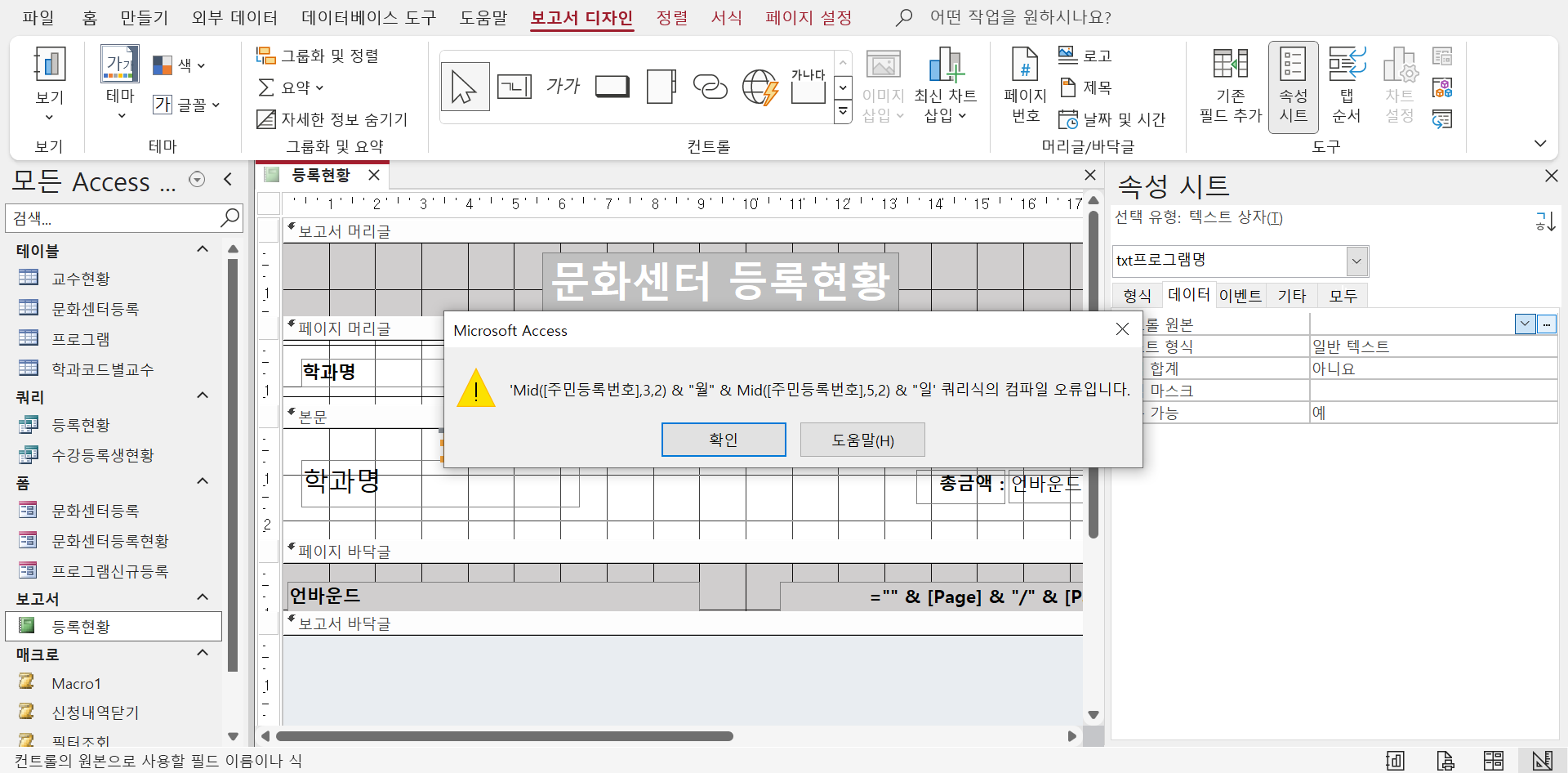 그림 상으로는 원인을 알 수 없네요. 실습한 액세스 파일을 올려주세요. 파일을 열어 직접 확인해야 원인을 알 수 있을 듯 합니다.