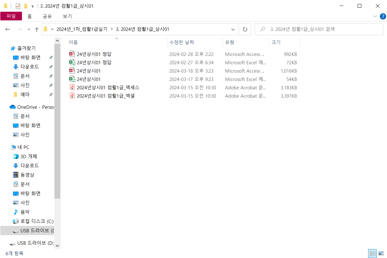 시험대비자료 [2024년 1차] 컴퓨터활용능력 1급 실기 기출문제의 문의입니다